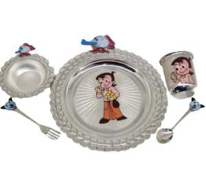 I saw this amazing Chota Bheem silver dinner set, and I can’t express how much joy it has brought into my nephew’s life. He’s a die-hard Chota Bheem fan, and now this dinner set is his absolute favorite. He eats, sleeps, and even watches his cartoons while holding it in his arms. Thank you for making mealtime so much more exciting!